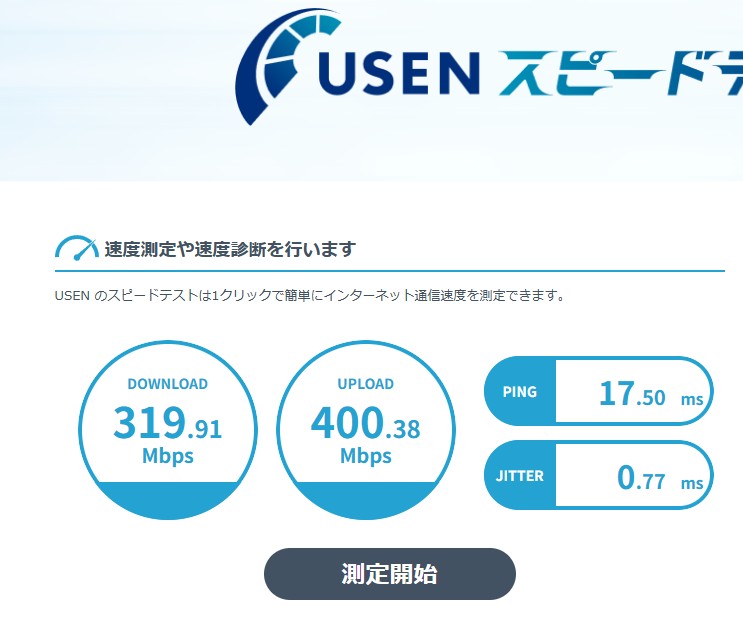 NetflixやUSENのスピードテストだと下りも300Mbpsと高速。