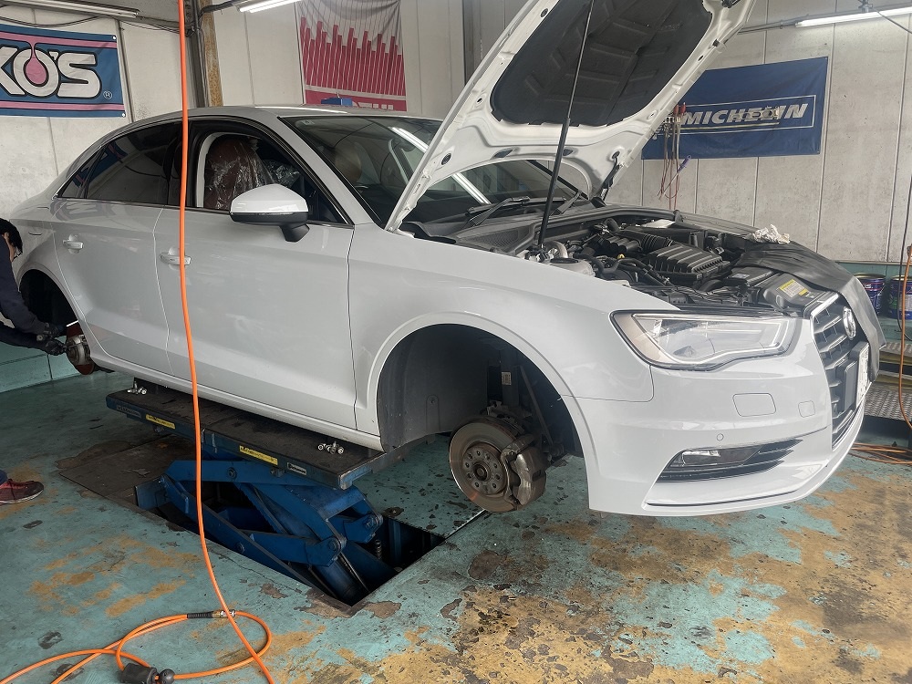 昨日の強風とまとまった雨の影響で、桜がかなり散ってしまいました。 夜は傘が裏返ってしまう程の強い風でしたね。 今日はAUDI A3(セダン)の12ヶ月点検を行っています。 合わせて冬タイヤから夏タイヤへの交換、その他気になる異常があるそうなのでその... -