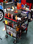 メカニック一人一人が、自慢のマイツールで作業しています。