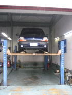 リフトアップが楽で、特にFR車の修理に適しています。当社で一番歴史のあるリフトです。